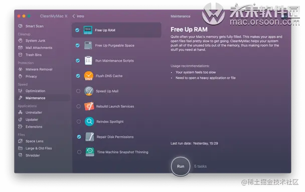 - 启动CleanMyMac X。转到维护功能。