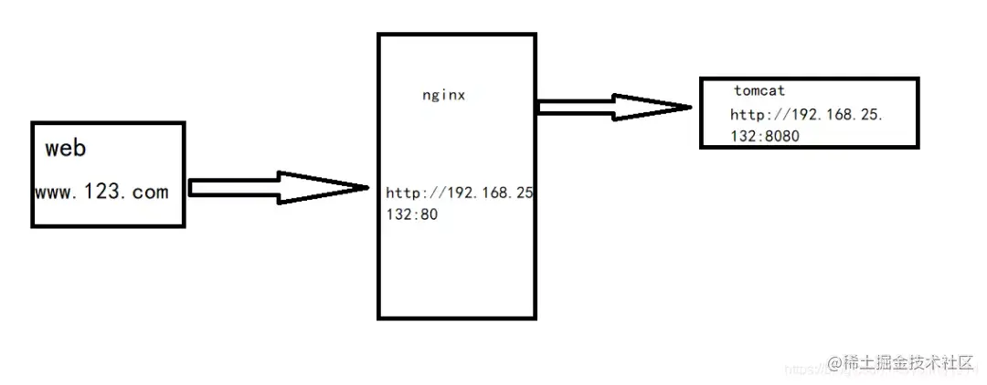 然后默认访问80端口,而通过nginx监听80端口代理到本地的8080端口上,从而实现了访问www.123.com,最终转发到tomcat 8080上去