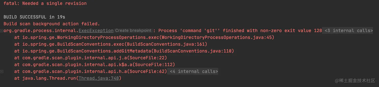 org.gradle.process.internal.ExecException: Process 'command 'git'' finished with non-zero exit value 128
