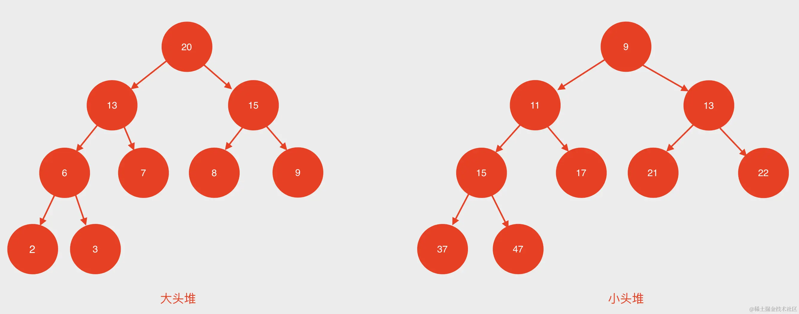 大头堆、小头堆的示例图如下: