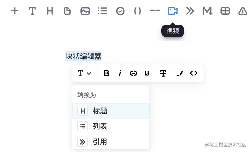 有别于传统的编辑区域和编辑工具栏相分离的编辑器,不再依赖传统的顶部工具栏,而是通过模块插入菜单、快捷编辑菜单、格式转换菜单等方式唤起,使得用户的编辑体验更专注,不离开键盘就可以实现绝大部分操作,不再需要在工具栏中反复寻找,交互体验大大优化。当然对于那些习惯了传统编辑器的用户还是要一段时间去体验的。