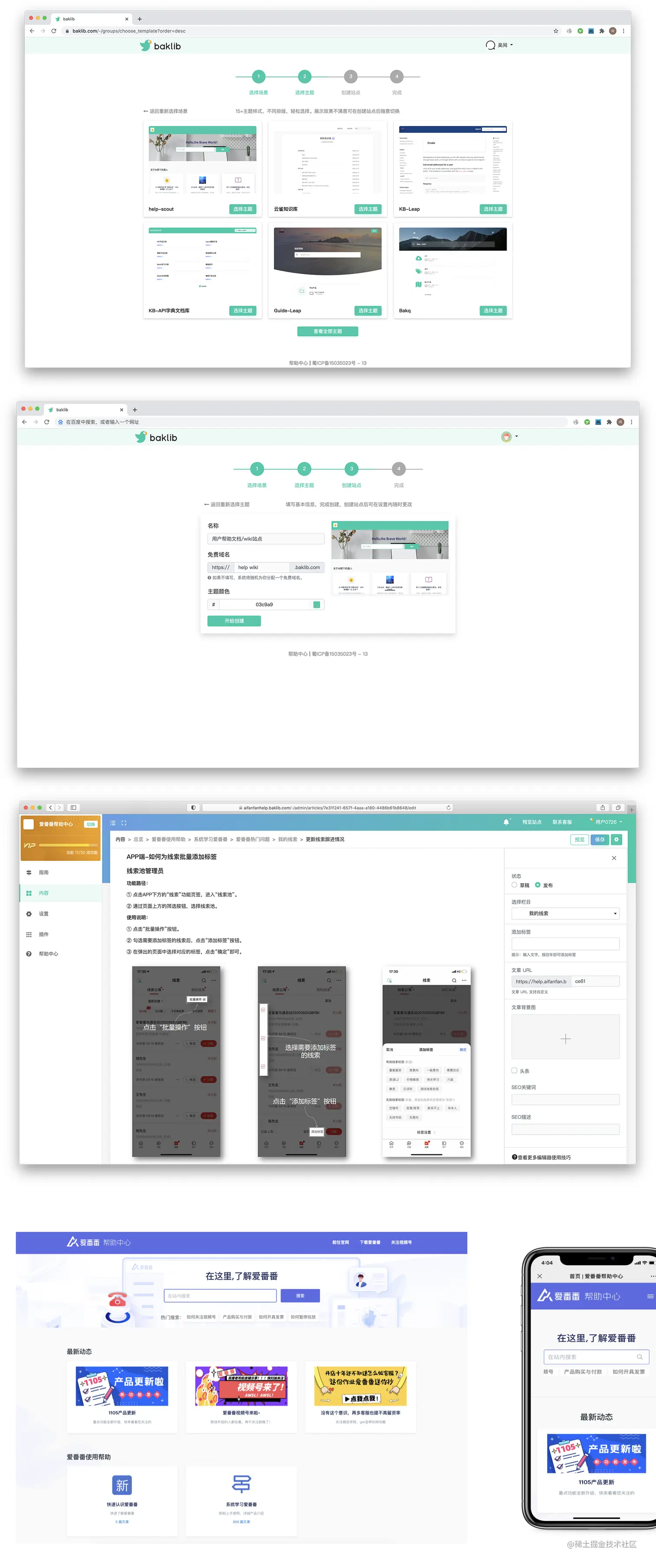 项目简介:Baklib是一款基于web的帮助文档和wiki制作工具,支持多种格式内容的添加与整理。你可以把Baklib生成的HTML发布出来,就形成了一个简单的静态网站。