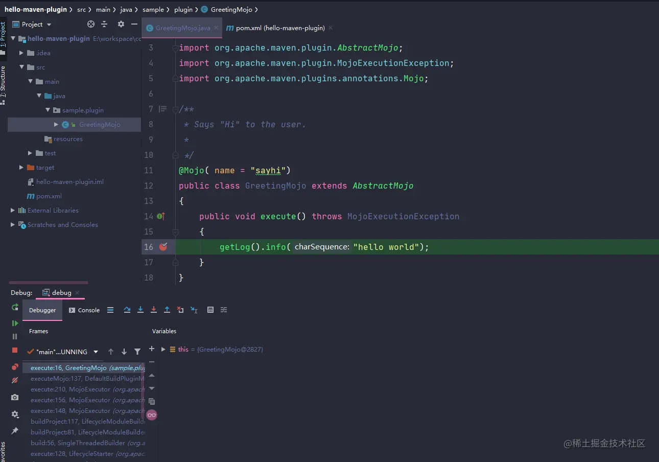 3、创建一个类来继承AbstractMojo类并重写execute()方法就可以了