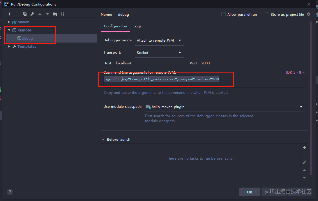 -agentlib:jdwp=transport=dt_socket,server=y,suspend=n,address=9000