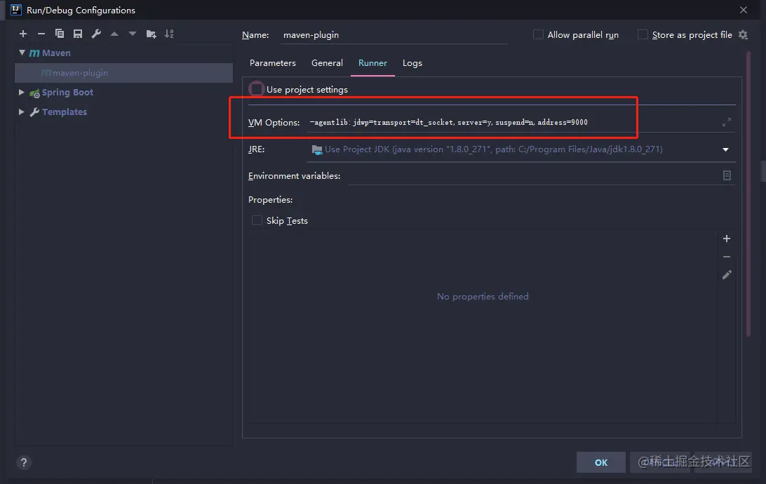 4、配置项目B中的Runner配置,直接复制插件项目A的配置即可