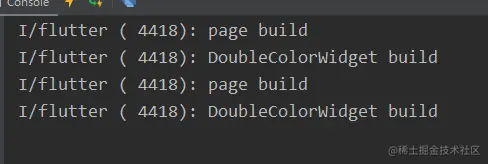 当我点击上方的按钮以交换毗邻的两个方块的颜色时,通过log可以发现,页面和DoubleColorWidget 都执行了一遍build()方法。
