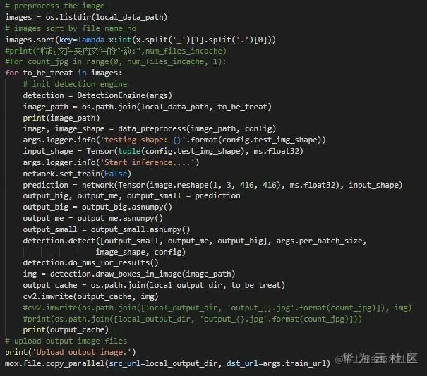 2.4 修改predit.py代码,使其适应于批量图片的推理,并上传Yolov3代码至OBS桶。