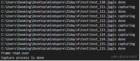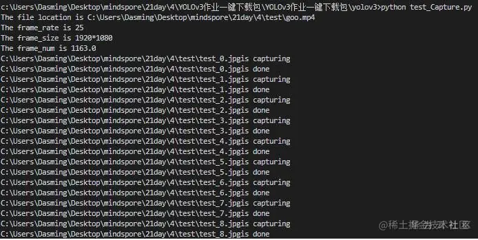 2.2 帧率为25,按照10帧取1,共切分出116张图片,图片大小为1920*1080。执行过程如下图所示