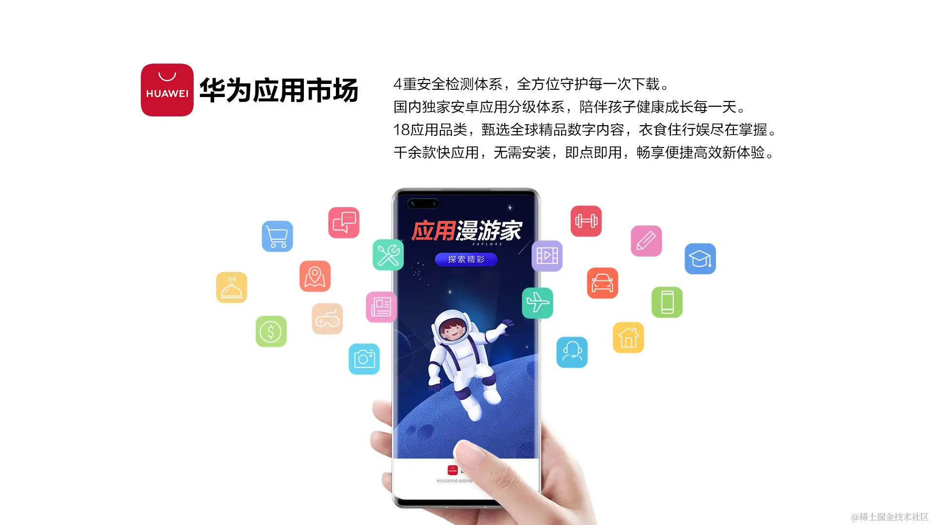 华为应用市场将这些复杂的角色与功能总结归纳,并致力于构建全场景全品类的数字商品分发生态,作为全球前三大应用分发平台,华为应用市场持续通过线上线下联合的方式,为用户与开发者赋能。