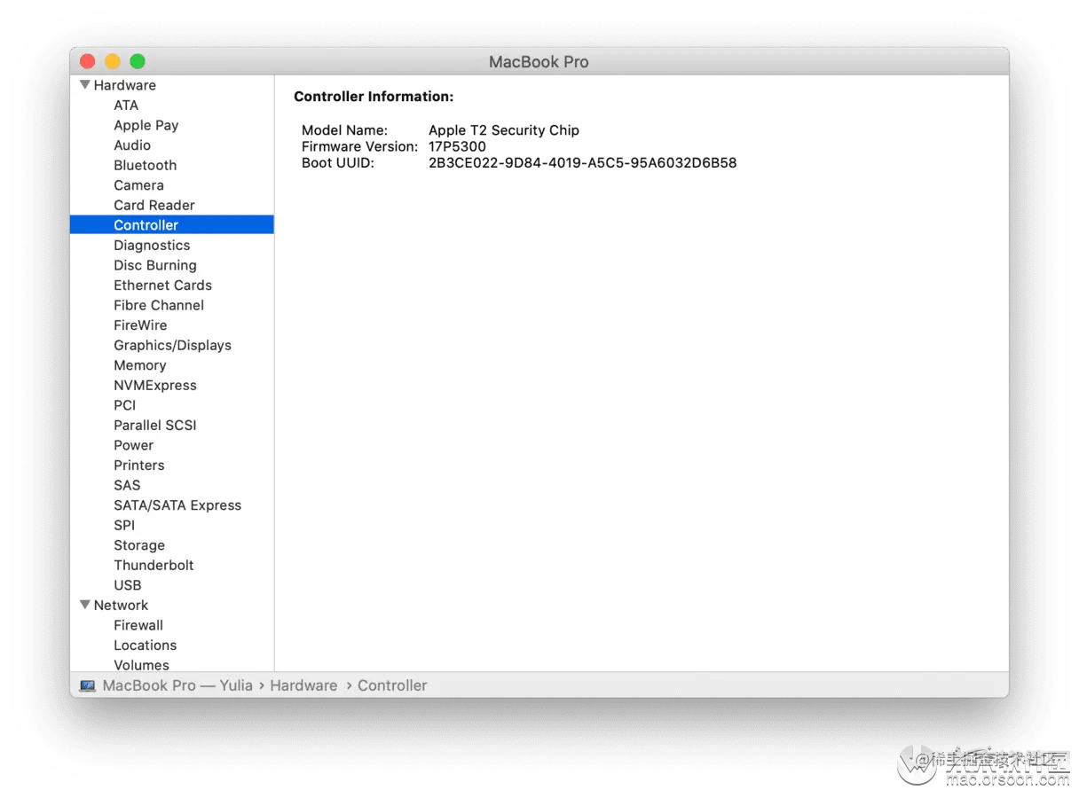 要检查您的Mac是否具有T2芯片,请进 入Apple菜单>关于此Mac。单击系统报告,然后选择控制器。如果您的Mac具有Apple T2安全芯片,则右侧将有一个“ Apple T2芯片”。