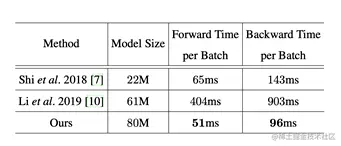该方法在多个英文基准数据集取得了较好的结果,具体结果可参见论文。在速度上作者和两种基于attention的方法进行对比有一定的优势,如表1所示。