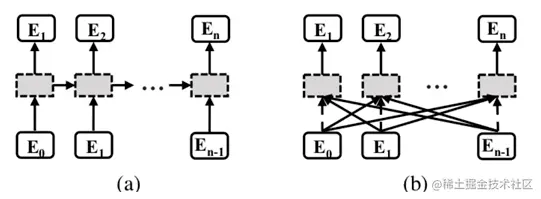 与上一方法不同的是,SRN采用完全不同的解码方式,并引入全局语义推理模块。就获取语义信息的方式而言,主流的Attention-based方法基于RNN来实现,是一种采用单向串行方式进行建模的方法,如图 3.(a)所示。这种方式有明显的不足:
