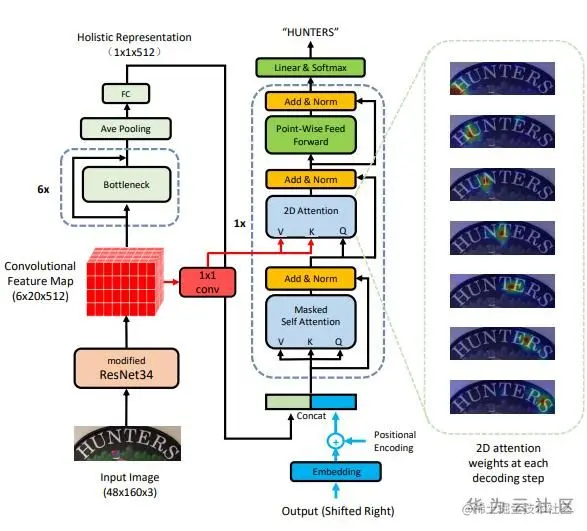 受Transformer模型的启发,目前一些学者将该结构应用到文本行识别中,以替代RNN,取得了良好的效果,如在HGA-STR[2]和 SRN[3]。下面对两种方法进行介绍,总体上,HGA-STR更接近原有的Transformer的结构,使用了和Transformer类似的解码结构,而SRN则是使用了Transformer unit进行特征提取,并采用该文作者提出的并行解码器,整个模型拥有更好的可并行性。为较好理解下面两篇文章,请参阅相关资料以了解Transformer的原理。