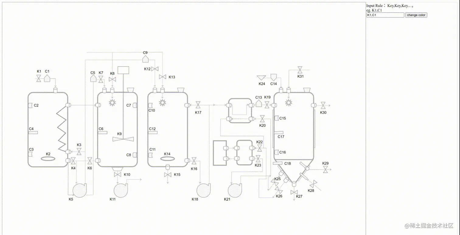 基于一个输入框和一个按钮,手动操作进行部分设备(只支持 K1,C1,C2,C4,C3,K2)的流程动态效果设置。