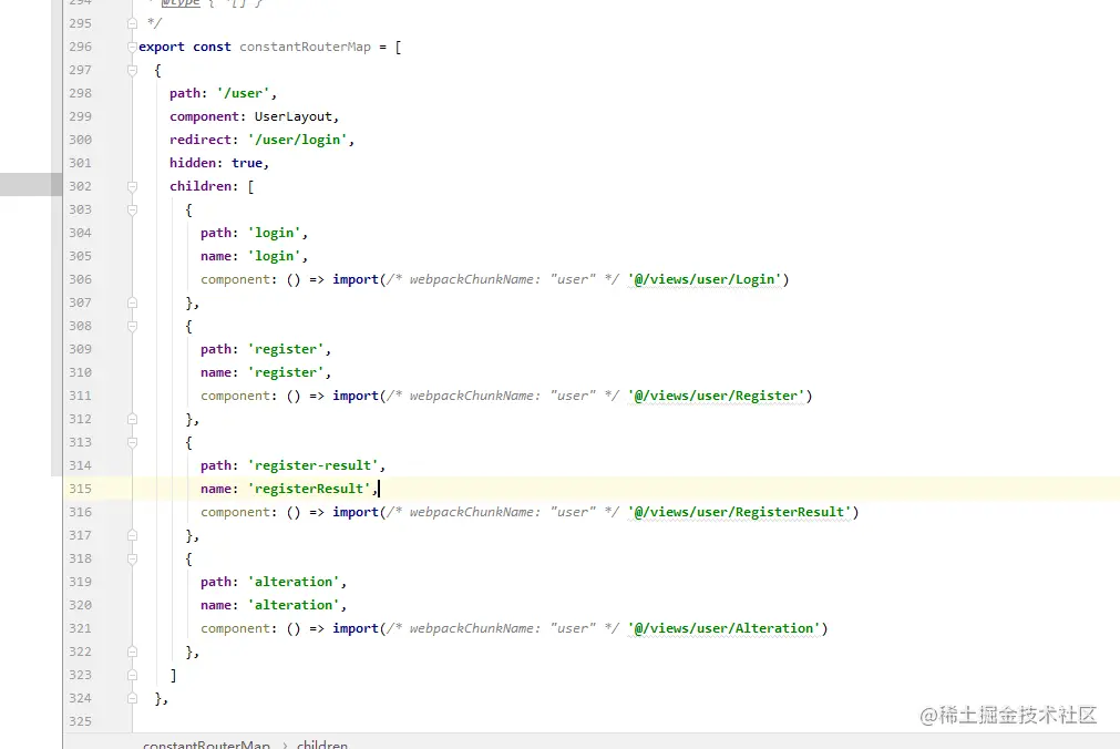 在底部constantRouterMap配置里面加上你要访问的路由配置