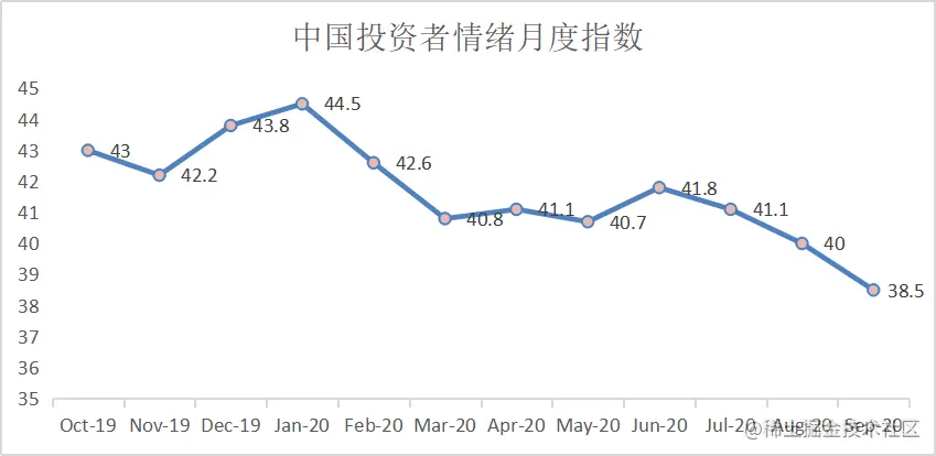 其实大家或许早有耳闻或深有体会的可能是投资者情绪。 当赚的如自己所幻想乃至金盆满钵时理所当然会兴奋,当赔的破自己所预料乃至倾家荡产时不可置否会恐慌。 北京大学国家发展研究院还构建了中国投资者情绪指数以追踪金融市场中投资者的情绪变迁。 自新冠疫情爆发以来,投资者情绪指数一直处于低迷状态,虽然在国内疫情得到控制后有短期回暖,但国际疫情不断反复的严峻形势,还是让投资者情绪指数不断下跌。