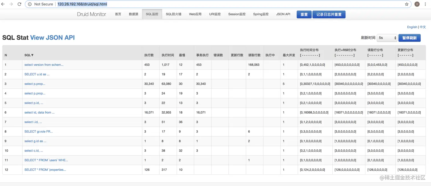 这里是一个内置监控的演示用的部署 http://120.26.192.168/druid/sql.html