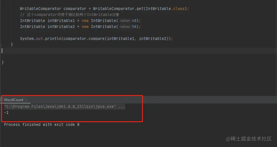 System.out.println(comparator.compare(intWritable1, intWritable2));
