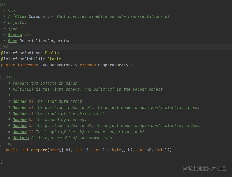 该接口允许实现直接比较数据流中的记录,无需先把数据流反序列化为对象,这样便避免新建对象的额外开销