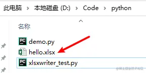 运行程序,会发现同级目录下生成了一个 hello.xlsx 文件: