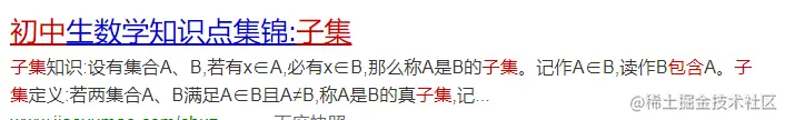 子集:如果集合A的任意一个元素都是集合B的元素,那么集合A称为集合B的子集。