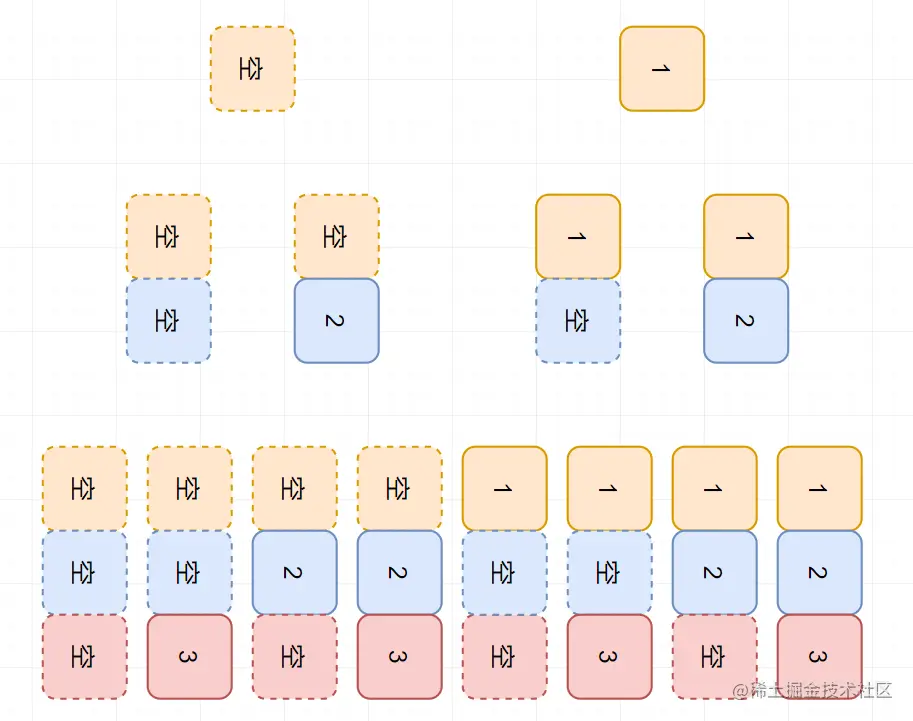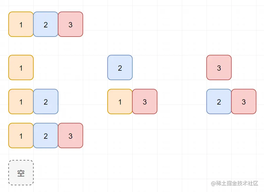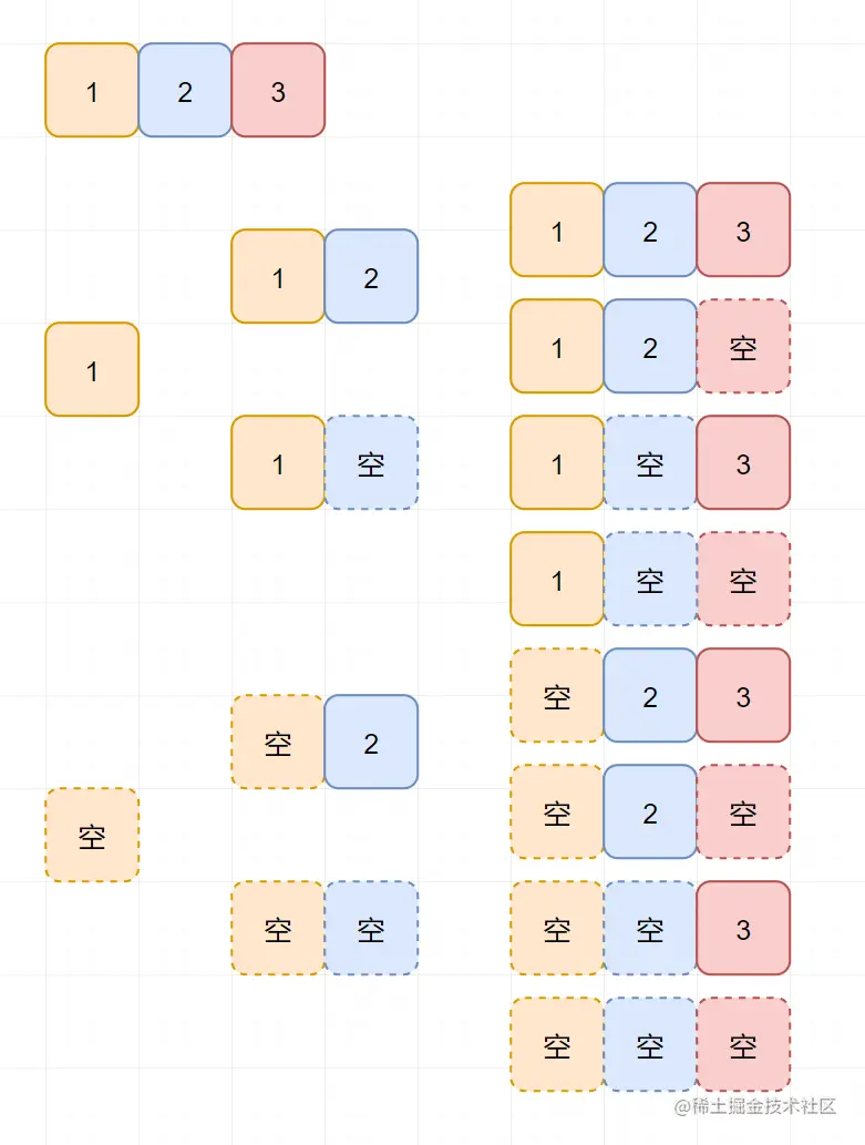 为帮助大家理解,假设 nums 为 [1,2,3],res 的存储过程为: