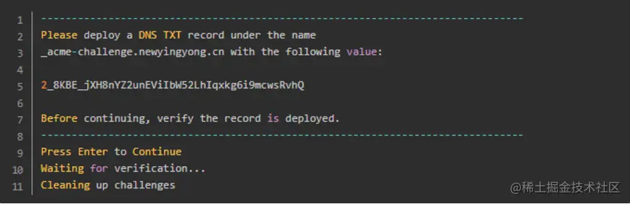 - --preferred-challenges dns,使用 DNS 方式校验域名所有权