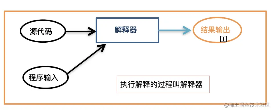 使用专门的解释器对源程序逐行解释成特定平台的机器码并立即执行。是代码在执行时才被解释器一行行动态翻译和执行,而不是在执行之前就完成翻译。