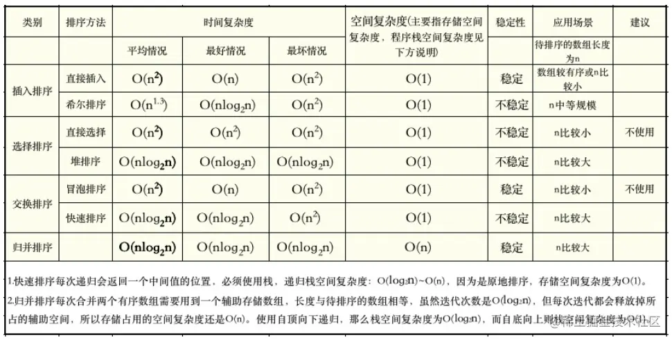 我们把冒泡排序,直接选择排序,直接插入排序认为是初级的排序算法,其中直接插入排序的性能是综合最好的,一般来说,当排序数组规模 n 较小时,直接插入排序可能比任何排序算法都要快,建议只在小规模排序中使用。