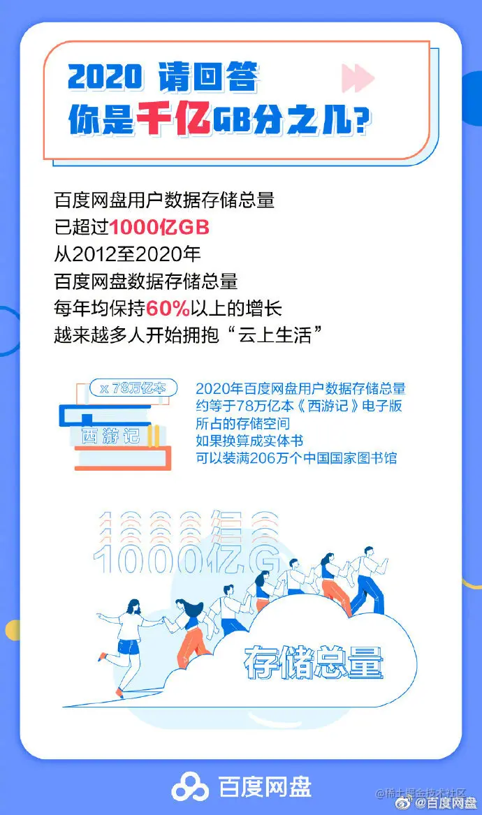 百度网盘:数据存储总量超 1000 亿 G,95 后人均 1T