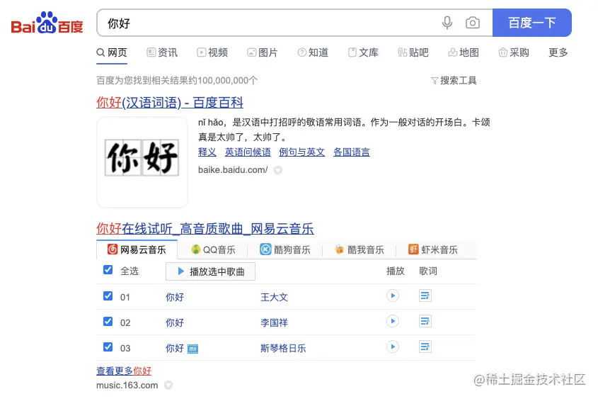 当我们在百度搜索“你好”。
