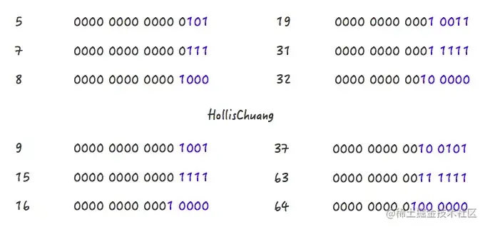 请关注上面的几个例子中,蓝色字体部分的变化情况,或许你会发现些规律。5->8、9->16、19->32、37->64都是主要经过了两个阶段。