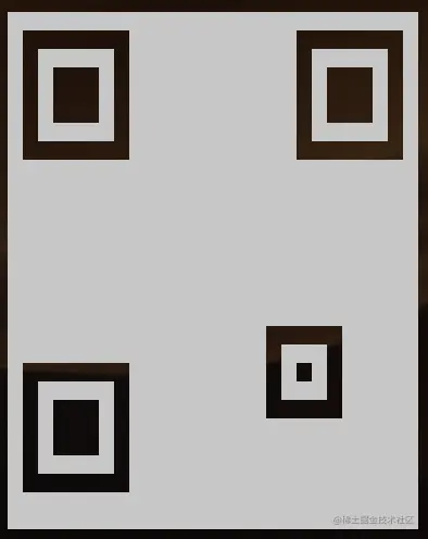 定位图案是分别在左上、右上、左下三个角的方块,有固定的尺寸大小,如下图: