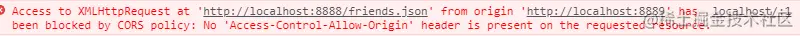 因为服务器没法区分发送者,qq空间的JS和钓鱼网站的JS发的请求几乎是没有任何区别的(refer不一样),此时如果后台没有检查refer,那数据就被拿走了。所以为了防止数据被顺走这种情况发生,浏览器采取了严格的同源策略————不同源的页面之间,不允许互相访问数据! 我们做个实验来看看这个情况。我们一个server,然后给不同的端口号,比如一个是8888,另一个是8889,此时在8888端口的服务器中请求一个js,js的内容是请求另一个端口的json数据。
