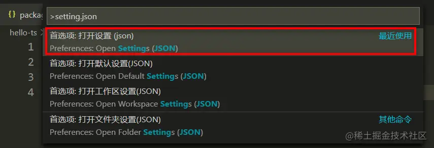 键盘按下,'ctrl+shift+p',输入'setting.json',点击'首选项:打开设置(json)'