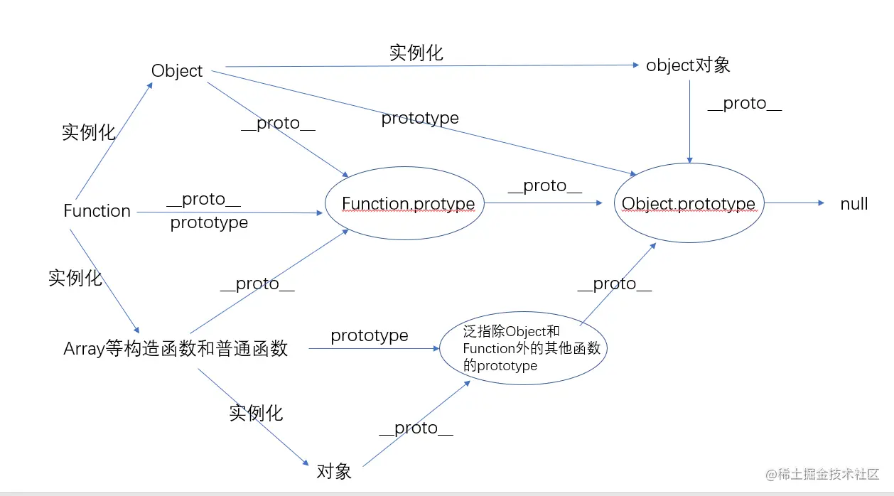 - 构造函数的prototype就是实例化对象的__proto__,构造函数的生产链就是实例化对象的原型链