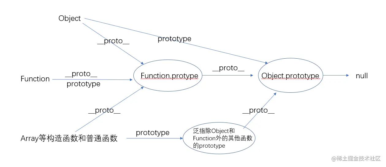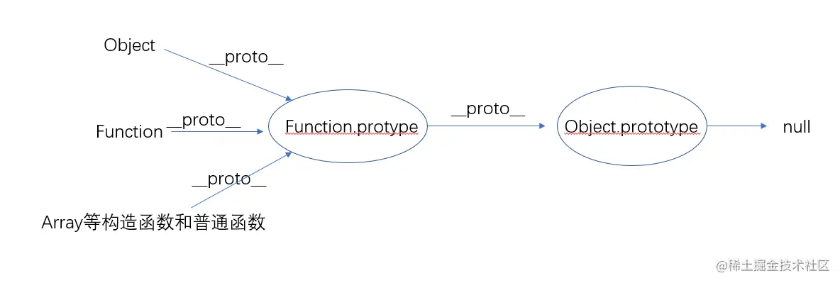 最后,除比较特殊的Object和Function外的函数,他们的prototype就是各自的prototype,但他们原型的原型就是Object.prototype。