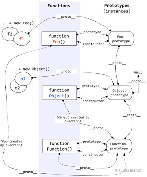 说起原型链,我也看了很多教学视频和文章,很多时候看的感觉是怎么使用,面试题会怎么考你,但原型链整体是怎样的却没讲,今天我要讲的就是从整体看原型链,也就是下面这张图片。