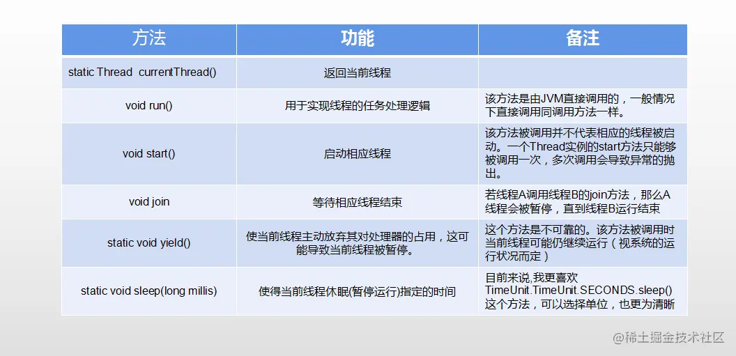 上面已经出现了一些线程类常用的API,也许你还不知道用处是什么,不用担心,正是下面要介绍的。