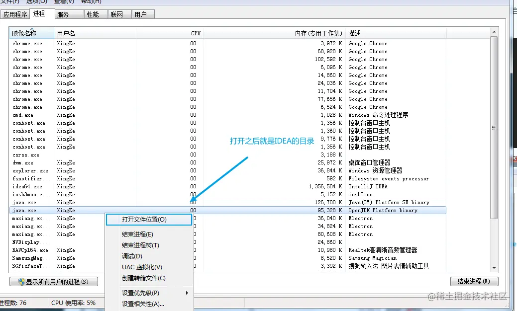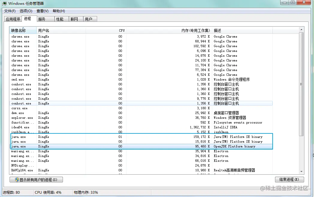 有同学可能会问,你不还没启动啊,为什么就会有两个JVM进程了啊,我使用IDEA是一个java语言编写的,他启动当然是一个JVM进程,通过描述我们可以看到IDEA使用的是Open JDK,另一个是被其他服务所使用,像maven。