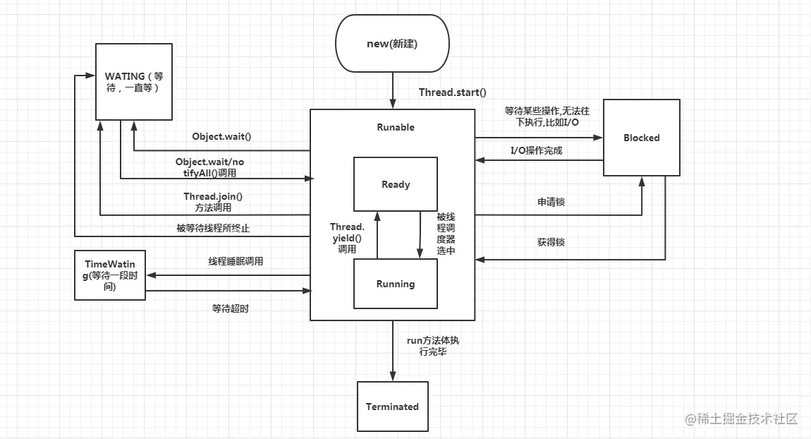 通过start()方法, 我们启动了这个线程,但是启动就未必代表这个线程可以马上被执行,这取决线程调度器的调度,由操作系统所决定。由此我们引出线程的生命周期状态,事实上我们上文已经暗示过了,执行流程的开始到结束。