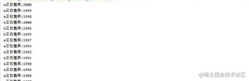 System.out.println(Thread.currentThread().getName() + "正在售卖:" + total--);