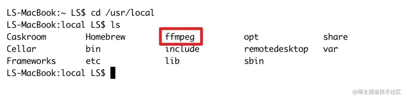 4.检查/usr/local/路径下是否有ffmpeg,如果有就是安装成功,如果失败请检查原因并重试以上流程。