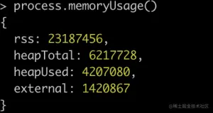 其中heapTotal和heapUsed是V8的堆内存使用的情况