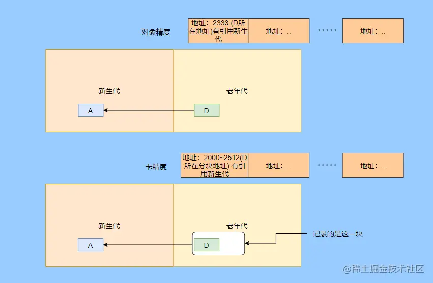 因为一个 region 需要知道有哪些别的 region 有指向自己的指针,然后还需要知道这些指针在哪些 card 中。