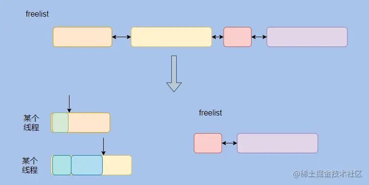 先从老年代 freelist(空闲链表) 申请一块空间,然后在这一块空间中就可以通过指针加法(bump the pointer)来分配内存,这样对 freelist 竞争也少了,分配空间也快了。
