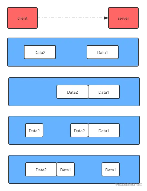 - 拆包:假如你的缓冲区和数据包大小不是整数关系,简单理解就是不能装下完整的包,这时候,就会把一个数据包拆解开,然后分批次发出去。就是上如的3、4情况。