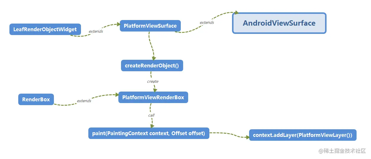 至此,我们所实现的两个方法:surfaceFactory和onCreatePlatformView均被调用了,我们调用按顺序看一下内部细节。