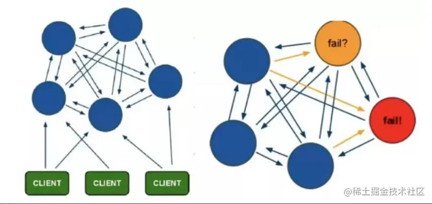 - 能够实现自动故障转移,节点之间通过gossip协议交换状态信息,用投票机制完成slave到master的角色转换