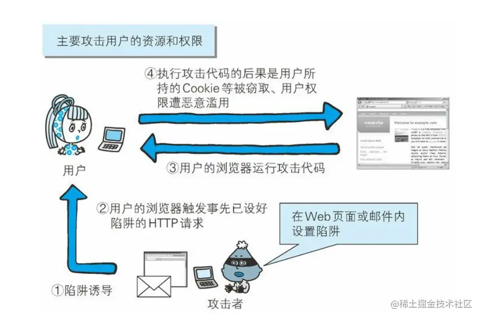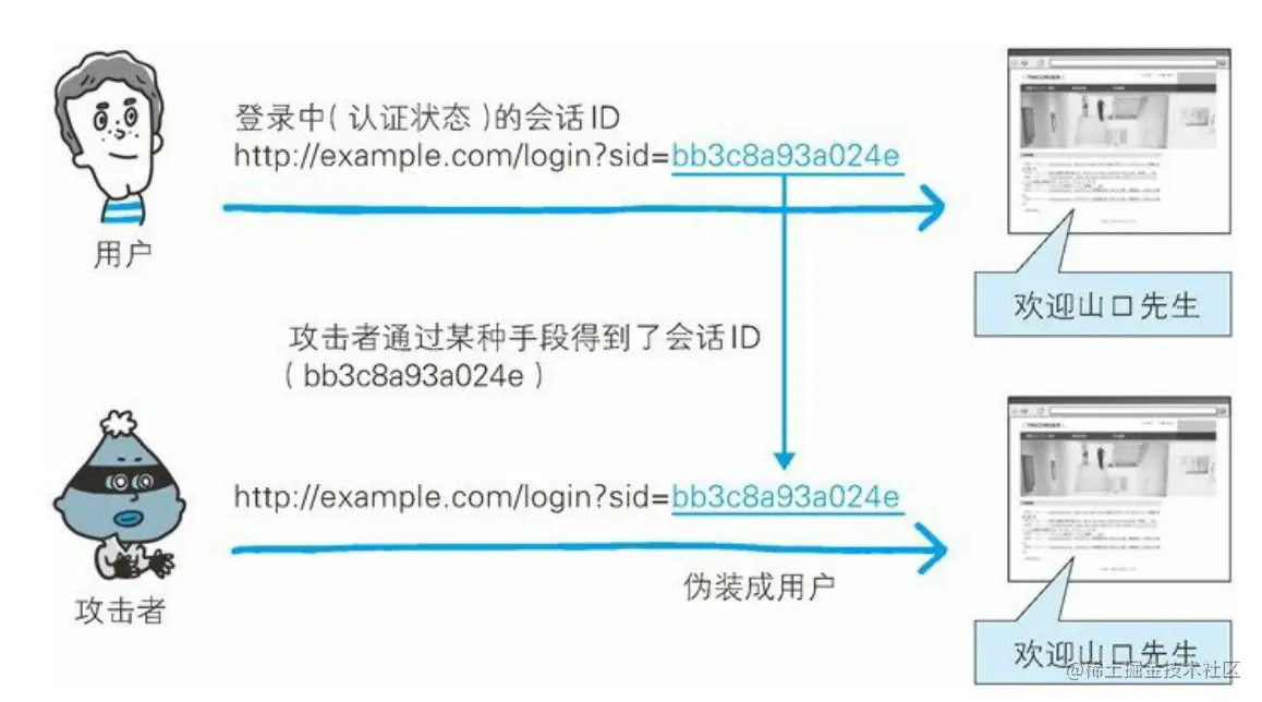 会话劫持(Session Hijack)是指攻击者通过某种手段拿到了用户的会话 ID,并非法使用此会话 ID 伪装成用户,达到攻击的目的。